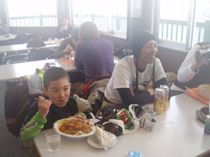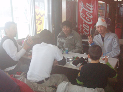 行く途中すげーキレイな雪景色を見たり、猿の群れを見ながら到着♪