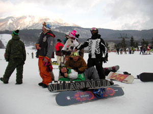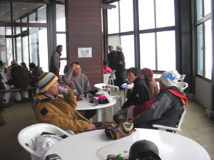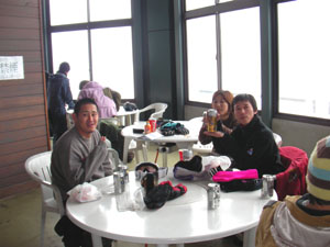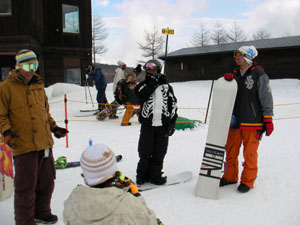 2007年2月11日アルツ磐梯スキー場 昨日の晩、朝までドラクエしてしまったザキ。かなりグッタリしてました。 ビールを持つたくや。この人お酒を飲まなければ結構やります! 午後、待ちに待った晴れ間での1枚。 パークで完全燃焼したまいどさん。 パークについて語るみんな。 せっかく親切な人に撮ってもらっているのに伯に夢中なみんな。 <TOP>