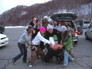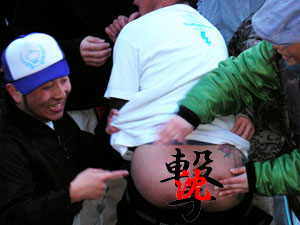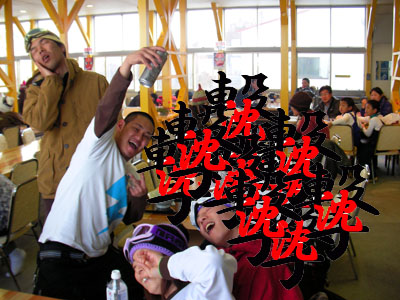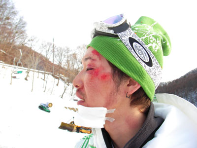 2007年2月25日武尊牧場33mレール 雪雲集合写真その2 傷跡。痛そう! 撃沈の悪ノリ写真。スペシャルモザイクで♪ のびさん・・・・・^^; スペシャルモザイク!のびさんは顔写真よりケツの方が多い! 撃沈との集合写真、スペシャルモザイク! NEXT <TOP>