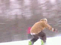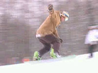 バックサイド180 RIDER★ザキ @体勢を低くして力を溜めます。 A前肩を軽く回転方向に回しながらテール(板の後ろ側)を弾きます。 B空中では体勢を小さく膝を抱える様にします。 C下半身を捻ります。この時点で踏み切った辺りに視線を残します。 D膝でショックを吸収します。 RIDER★ザキMOVIE ※ポイントはB〜Cの空中姿勢です。 体が伸びていると下半身を捻って着地に合わせることが出来ません。 <TOP>